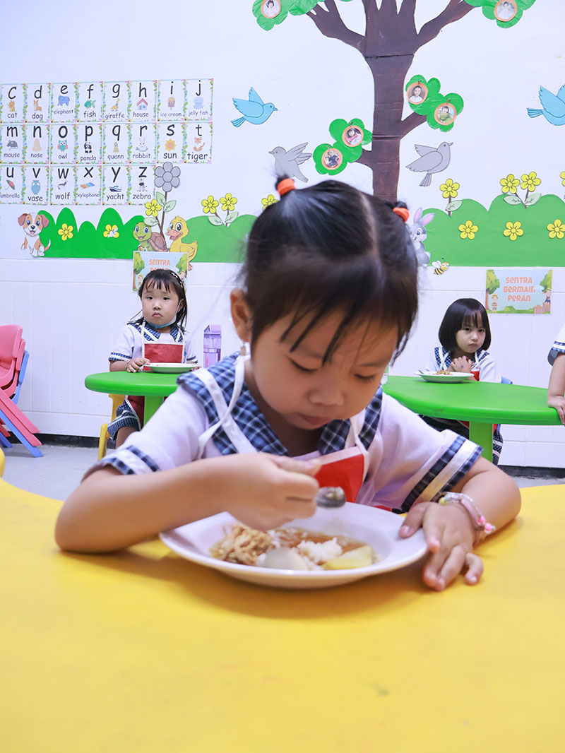 Through play-based learning and exploration, children are guided to think critically and creatively, develop curiosity, and foster respect for diversity in religion and culture. We also equip children with language skills in Indonesian, English, and Mandarin, while nurturing their potential through the introduction of basic entrepreneurial activities.